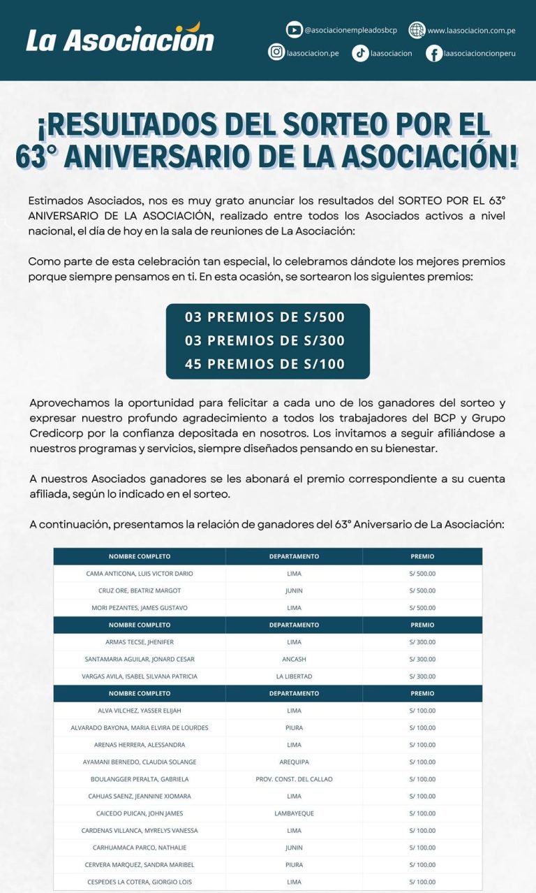¡Ya tenemos ganadores del 63° Aniversario! Descubre si eres uno de ellos.
